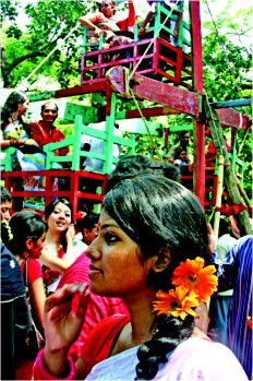 Not a year passes by without my going to the Ramna botomul to observe the New Year. It seems as though I wait for the whole year for this morning. There is ecstasy in getting the white and red sari and the flowers for the hair. Throughout the year we dress up for many occasions but dressing up in the red and white for Pahela Baishakh seems to take the heart to the zenith. There is joy in heart as I get ready to welcome the New Year. The flowers that I put on the hair seem to have bloomed just for that day. When I take my children and join the hundreds of others under the “botomul” we become the waves of a pounding sea, we are like the rushing waves flowing to greet the year together. This unity, this blending in for the celebration fills the heart with gladness. We seem to wake up anew to our culture, to realise that we are the proud Bengali endowed with a rich heritage of our own. Pahela Baishakh following March 26 at close heel seems to reunite us once again as a proud nation. When I hum along the songs of the new year with the artists singing in different groups I feel like holding on to each and every song, to hold on to the joyful moments. The dancers are like the flaming krishnochuras dancing on the trees all around.